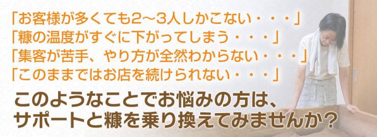 酵素風呂を乗り換えて、お店のレベルを一つアップさせたい方は、お問い合わせください。